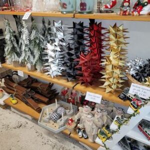 Julepynt – dekorationer – nisser – glaskunst – adventskranse – honning – kalenderlys – glasslibning – beton figurer – kort – lys – servietter og meget, meget mere.